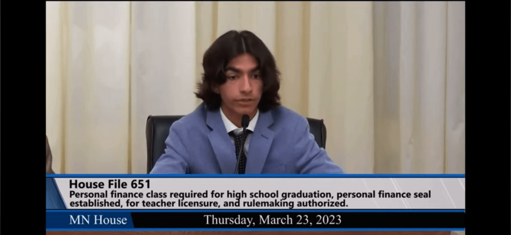 Tej Bhagra testimony to the MN House of Representatives – the bill successfully passed in 2023! With the passage of this bill personal finance coursework will be required for MN high school students.
